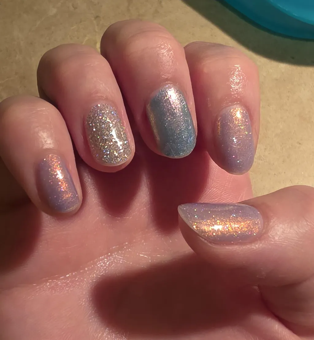 Cool off with a sprinkle of Holo Frost - an icy silver holographic glitter filled with reflective glitter that sparkles in direct lighting. The pure holo silver base and blue iridescent glitters throughout will leave you shivering with excitement this holiday season. It might be cold this time of year in other parts of the world, but in summer down under the only frost we have is holo! Opaque in 2-3 coats.